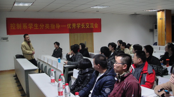 3月8日晚,控制系优秀学长交流会在玉泉校区工控新楼501温馨开场。此次交流会主要是应届本科毕业生学长为08级同学在出国、考研、就业等方面作详细介绍,分享自己的经验,并针对同学们的困惑给出解答。交流会过程中,控制系团委书记丁立仲老师与同学们分享了他对未来的理解,刘天博、吕江滨、邹琴梅、李志博、黄笑五位同学与大家一起回顾了他们的寻梦之旅。