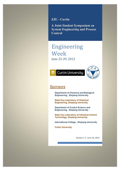 2012年6月18日-7月6日,澳大利亚科廷大学在我校开展学生暑期项目,其中,6月25-29日为“The Engineering Week”(工程周),由浙江大学控制系、化工系和澳大利亚科廷大学共同举行学术交流活动。本次“The Engineering Week”(工程周)活动由控制系全程策划,围绕着“化工”、“控制”等主题,开展了教授学术讲座、学生论文报告、参观实验室、参观企业等交流活动。