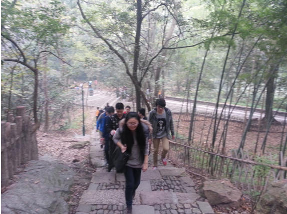 在爬山开始进行了不到半个小时,大家开始出现掉队的现象,这是大家平时缺乏体育锻炼的表现。大家在大一大二基本上都修完了体育课,加上大三忙碌的生活,大家更没有精力挤出时间去做体育运动,因此身体素质都有一定程度的下降。