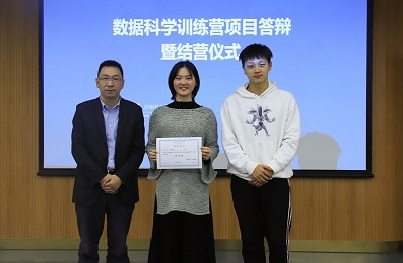 随后,各训练营团队基于四周的学习积累和实战锻炼,为我们带来了精彩纷呈的答辩展示。一个个精彩、新颖的项目尽情展示着同学们的奇思妙想,郑宇辰同学对包含图书和用户信息的数据进行预处理,利用协同过滤、随机森林、深度学习构建了图书推荐系统;李章源同学利用平台上的二手车交易记录,通过切分出数据集进行模型训练,预估不同二手车成交的价格;刘将品同学利用来自于美国六个主要城市的短租数据集,利用特征工程进行房价预测……现场的嘉宾和老师对同学们的成果给予了高度肯定,也针对性地提出了很多问题和值得进一步探究优化之处。经过现场评分和统计,最终评选出了三名三等奖(金融风控——贷款违约预测、二手车交易价格预测、图书推荐系统),两名二等奖(大脑肿瘤CT影像的分析、特朗普推特分析),一名一等奖(Airbnb房间预测),一名特等奖(基于脱丁烷塔预测丁烷含量分析)。