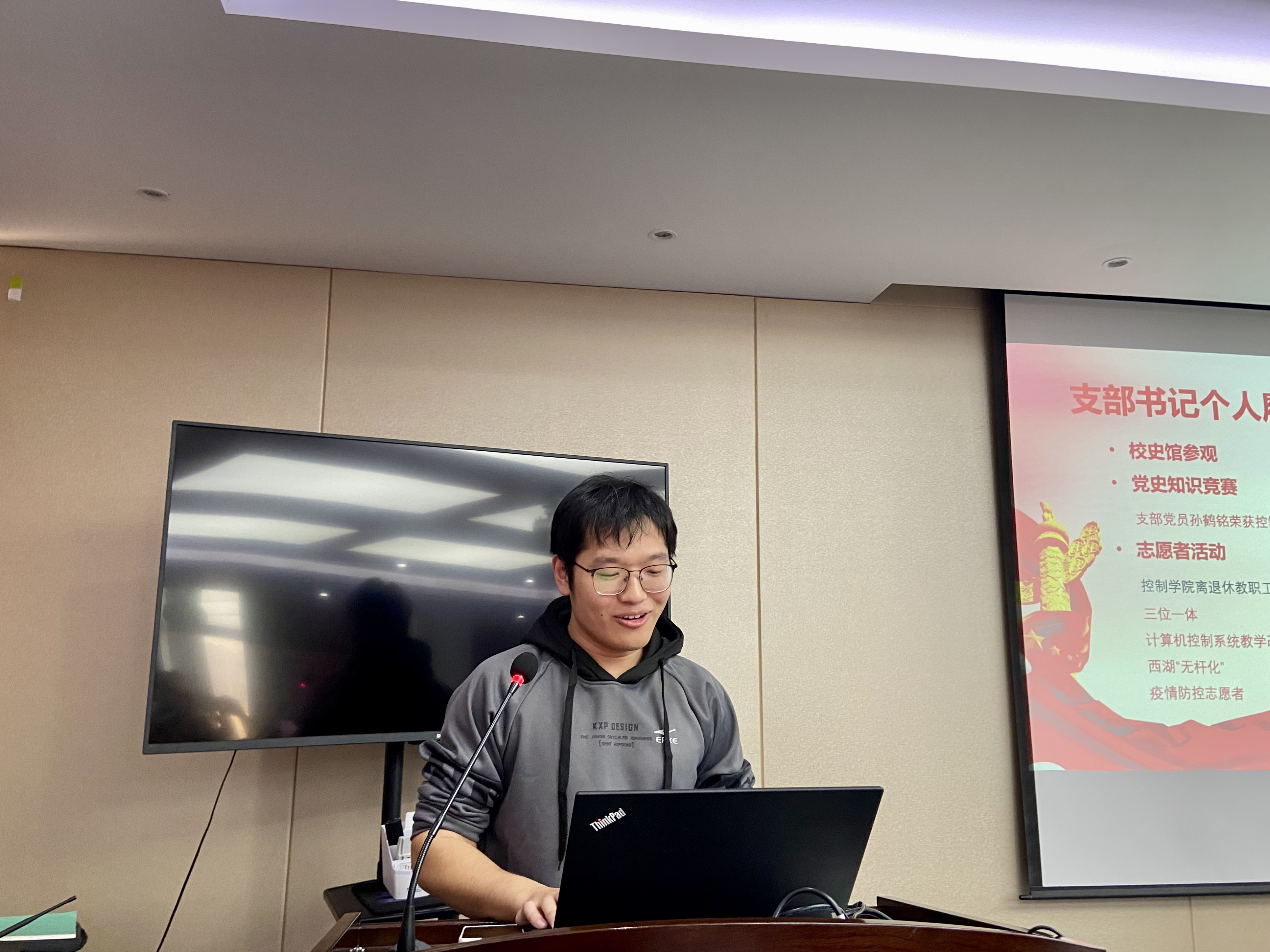 教工党支部书记围绕党员管理与发展、政治理论学习、改进方向与工作计划以及个人具体履职情况等方面展开述职。教工党支部实施联合研究生党支部共同开展工作、党建业务深度融合等切实举措,克服了教学、科研和行政业务繁忙等客观不利因素,确保“三会一课”、党员发展等日常事务和“老和云起”、工程师雏鹰训练营等创新活动高质量开展,办出了成效,办出了风采。学生党支部书记从“三会一课”、新党员的严格考察和发展、支部凝聚力建设、宣传工作等角度展开述职。各支部鼓励吸引优秀学子向党组织靠拢,依托各类平台督促理论学习,利用“主题党日+”渠道开展了各类主题党日活动。工控所研究生第六党支部组织党员前往杭州市禁毒馆进行禁毒教育实地考察,智控所研究生第二党支部开展环保志愿活动,为保护西湖周边环境贡献力量,智感所第一党支部邀请退休老教师周泽魁教授参与以“讲好控制故事,传承红色基因”为主题的圆桌交流会,讲入党初心,话入党故事。