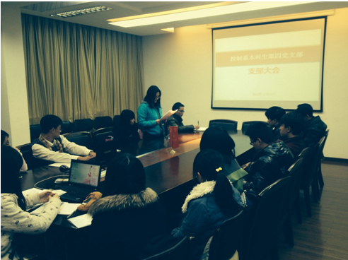 控制系本科生1004班党支部在工控老楼召开了2013年支部最后一次的会议。本科生党总支书记徐贞老师以及14名成员参与了此次会议,会议由支部书记马彦楠主持。