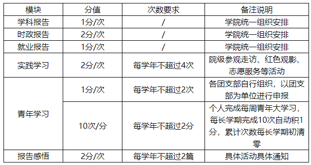 3.因出国交流等特殊情况,无法完成本学年所要求积分者,需在学年结束前提供证明材料及申请报告,经过审核后可以课程报告的形式替代。